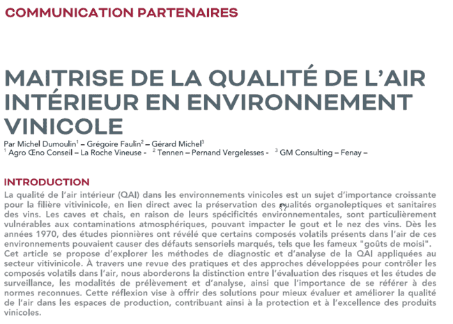 La filière vitivinicole n’échappe pas à cette tendance et la maîtrise des off-flavours impose inévitablement la maîtrise de la qualité des atmosphères dans les espaces dédiés à la vinification et au stockage.
